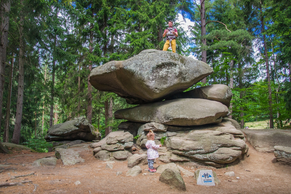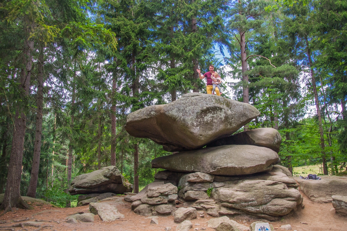 Nie powiem, żebym się o nią nie bał, bo Chybotek ma 4 metry wysokości i składa się z kilku spłaszczonych kamieni, z czego jak nazwa wskazuje jeden się rusza, a w zasadzie to chyboce. Z kolei Sara nie bała się nic! Jest to to jedna z bardziej znanych formacji skalnych w Sudetach, a wzmianki o tym miejscu można znaleźć już w pamiętnikach i zapiskach z XVI wieku.