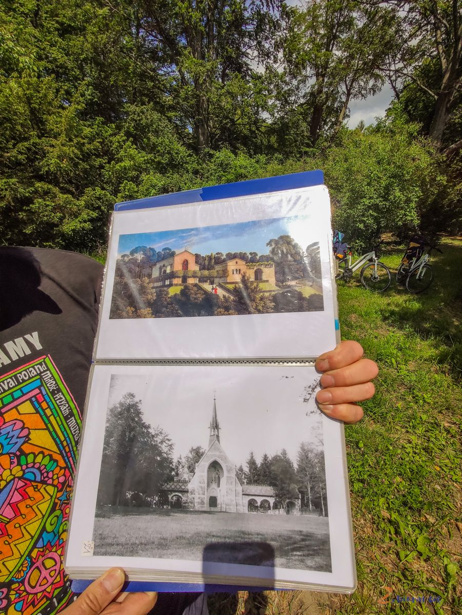 był jednym z najbardziej ulubionych miejsc odpoczynku i zabawy mieszkańców zamku. Znajdował się tu budynek główny z pokojami dla gości, gospoda, sala do tańca oraz kilka mniejszych obiektów, jak choćby altana do tańca, pawilon muzyczny dla orkiestry, czy pawilony z lustrami odbijającymi najpiękniejsze parkowe widoki. Do tego bajkowy płot i przepiękne otoczenie. Dziś niestety możemy sobie to tylko wyobrazić na podstawie starych fotografii i rycin (przewodnik jest „uzbrojony” w pokaźny album).