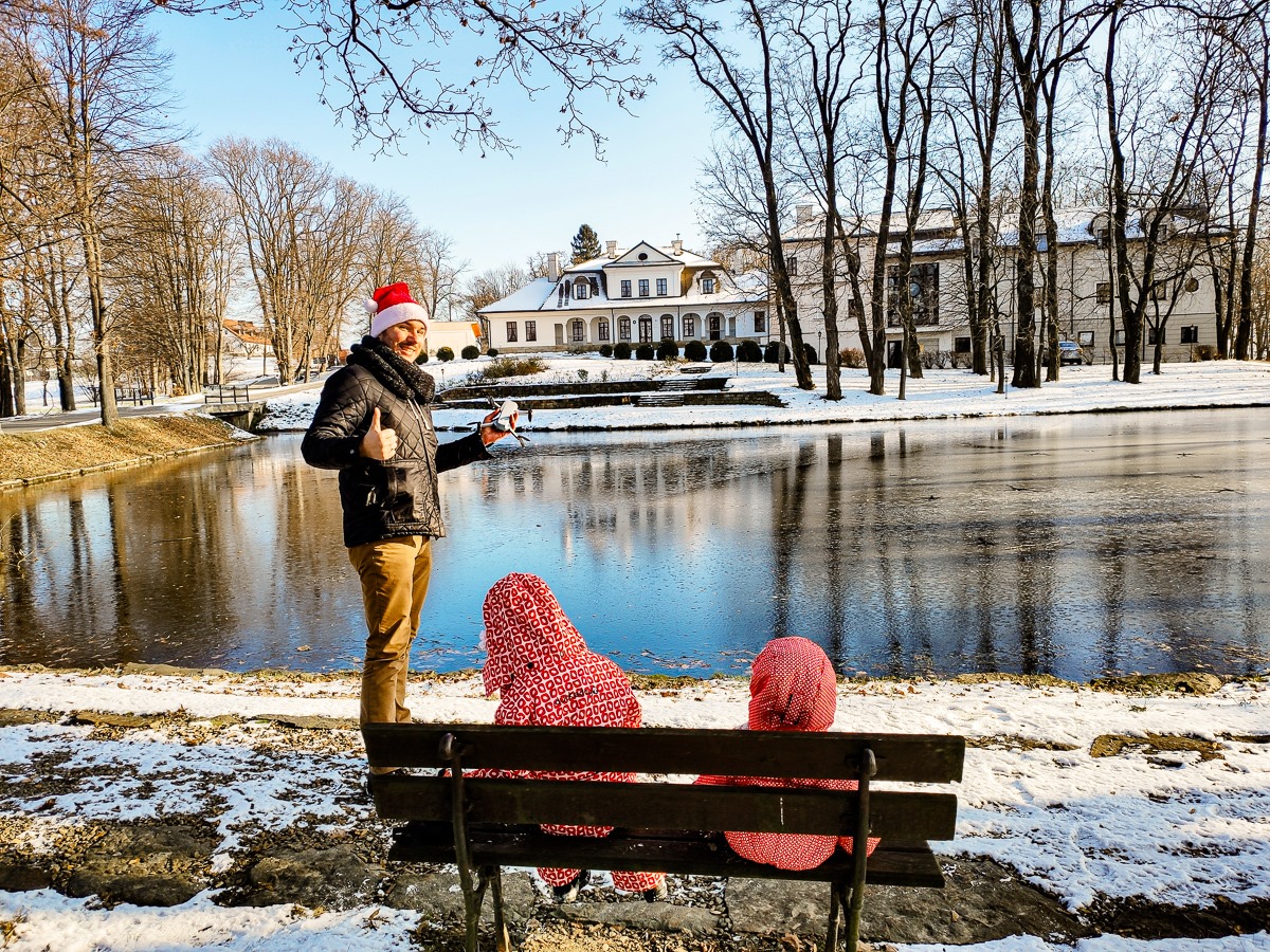 Żeby jednak nie było, że siedzieliśmy tylko we wnętrzu i objadaliśmy się pysznościami. Wybraliśmy się na spacer po dworskim ogrodzie i ze zdziwieniem odkryliśmy, że w grudniu są tu pąki magnolii, a pod grubą szybą, która przykrywa stare ujęcie wody, widać bujną zieleń.