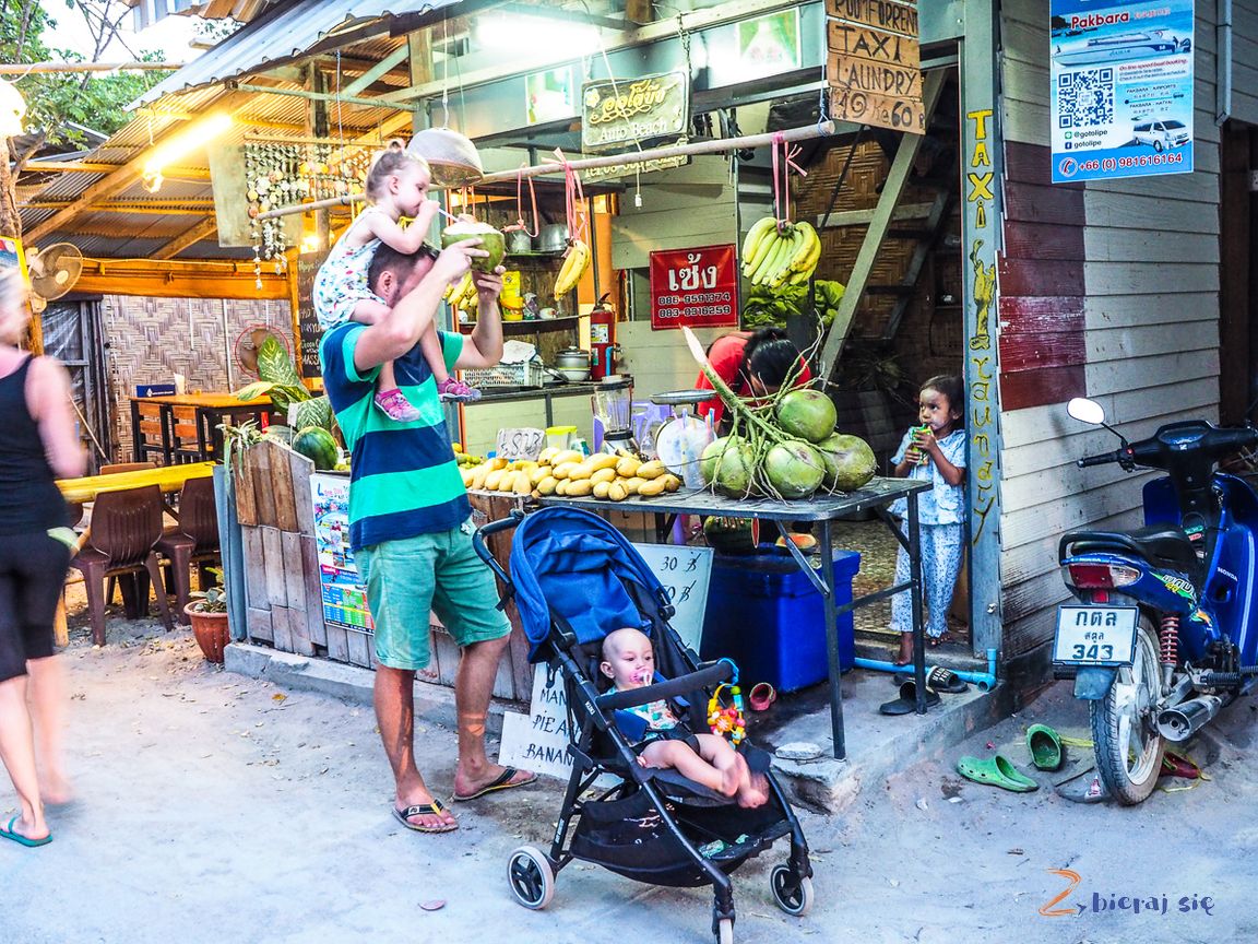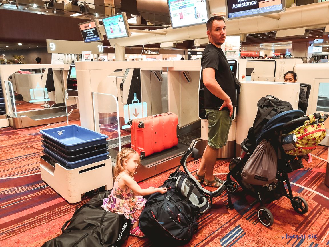 Inaczej było też w Azji, gdzie przez 100 dni naprawdę dużo chodziliśmy. Tu bez dobrego, małego, zwinnego i lekkiego (bo kilkumiesięczniak przecież nie zawsze może jeszcze siedzieć) wózka nie wyobrażam sobie tego wyjazdu. U nas świetnie sprawdził się w tej roli „samolotowy” Baby Monsters Kuki. Ma tą zaletę, że jest na tyle mały, że bez problemu bierzesz go ze sobą do luku bagażowego na pokład samolotu (przejedzie nawet między fotelami) i później nie musisz czekać aż obsługa Ci go dostarczy. Na tyle lekki, że nie przeszkadzał nam podczas 35 tyś km w Azji. I na tyle uniwersalny, że jeździła nim i 3 letnia Sara i kilkumiesięczna Iga (w momencie startu miała 7 miesięcy). Więcej na temat wózka wkrótce przeczytasz w naszej recenzji.