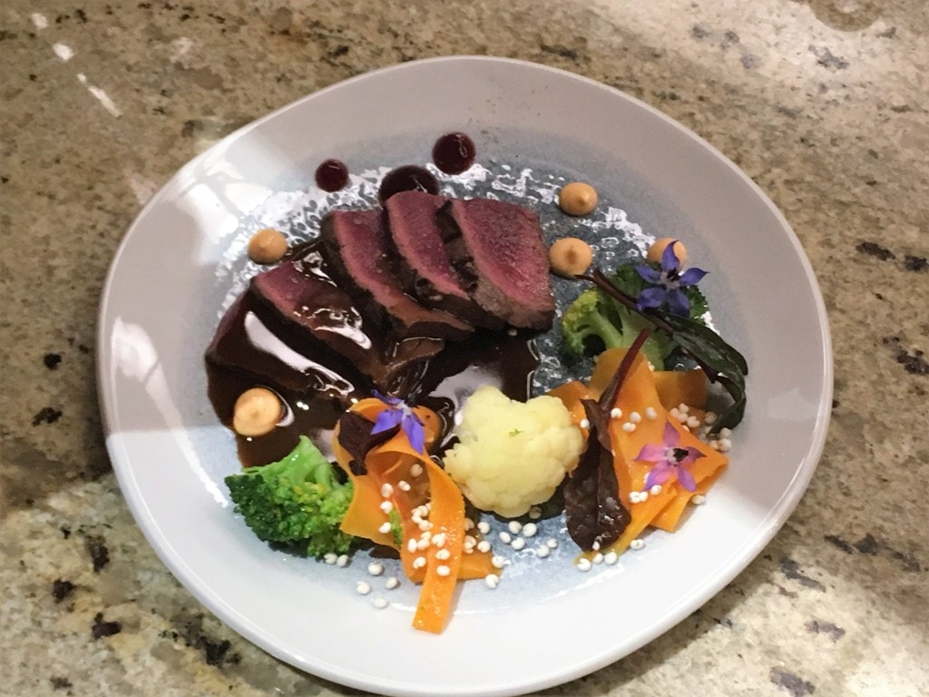 - Stek z jelenia z warzywami z patelni i sosem demiglace z kurkami/ Restauracja Babinicz
