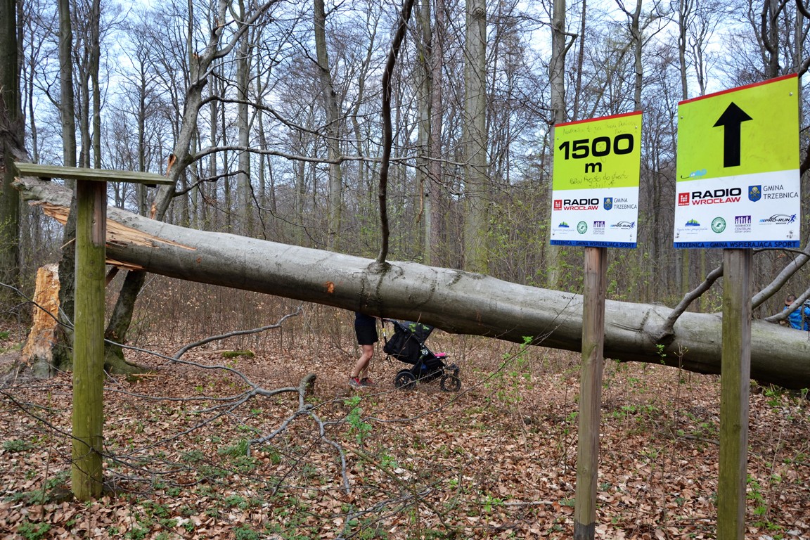 Kiedy rano podejmowaliśmy decyzję gdzie jechać trochę pobiegać i pochodzić po lesie, zastanawialiśmy się nad lasami obok Wieży Widokowej w Kotowicach, Ślęży oraz właśnie Lasem Bukowym w Trzebnicy. Wybór padł na ostatni, ponieważ nigdy tam nie byliśmy :). Mieści się on 34 kilometry od naszego domu (23 kilometry od rynku).