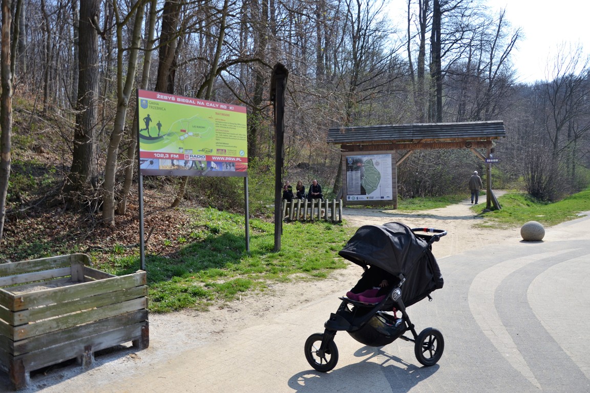 Trasa biegowa rozpoczyna się w dzielnicy uzdrowiskowej Trzebnicy. Na przełomie XIX i XX wieku Trzebnica była znanym i popularnym uzdrowiskiem. Przyjeżdżali do niego głównie wrocławianie by korzystać z okolicznych lasów, wód mineralnych oraz kąpieli borowinowych. Dzisiaj uzdrowisko nie działa, a wody leczniczej się nie wydobywa. Las jednak pozostał i naprawdę prezentuje się bardzo ciekawie. Ponadto władze miejskie odnowiły dzielnicę uzdrowiskową, dzięki czemu to naprawdę dobre miejsce do spędzania czasu wolnego. Teren jest ładny, zadbany. Mieści się tu plac zabaw dla dzieci, ale też park dla psów!, a także odbywają się koncerty i wystawy zdjęć. Spotkaliśmy tu wędkarzy, rodziny z dziećmi, rowerzystów, rolkarzy, a także spacerowiczów.