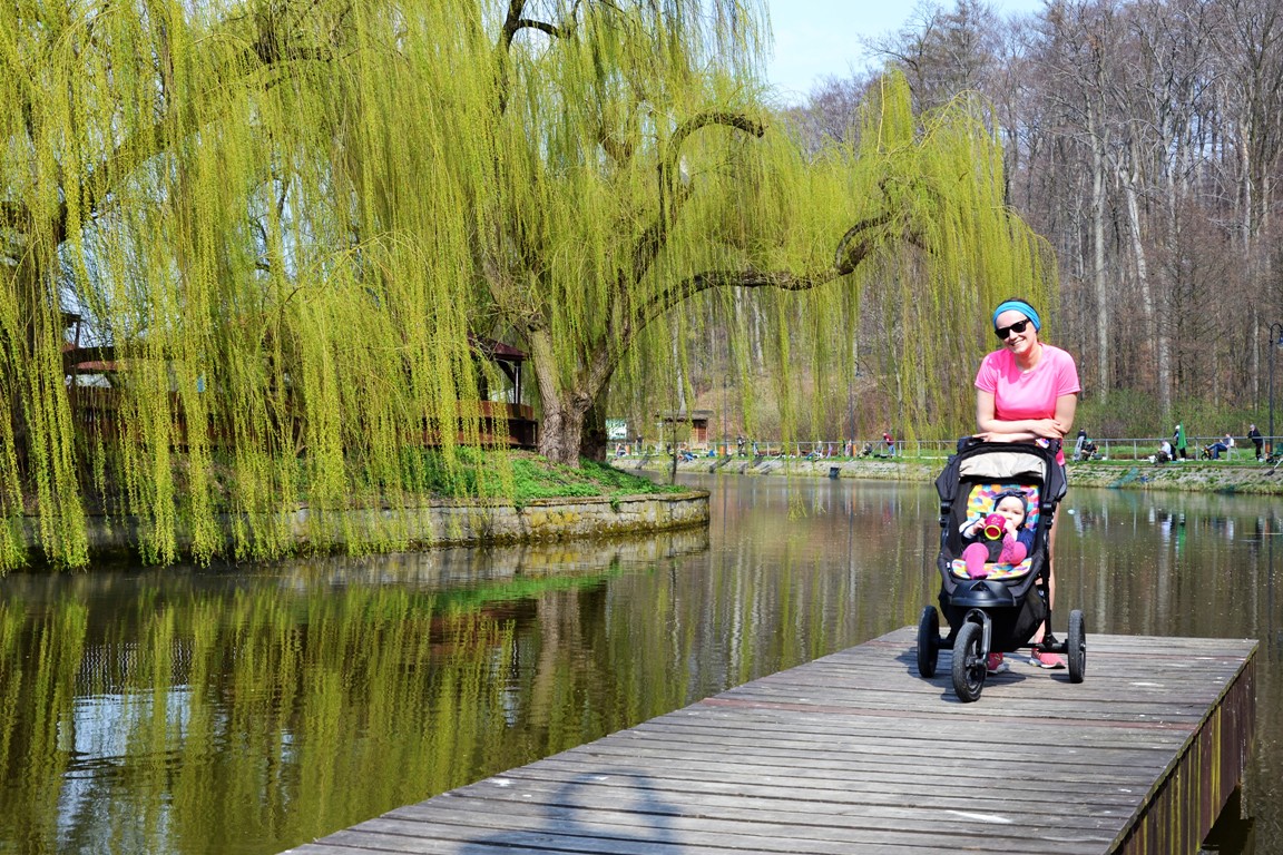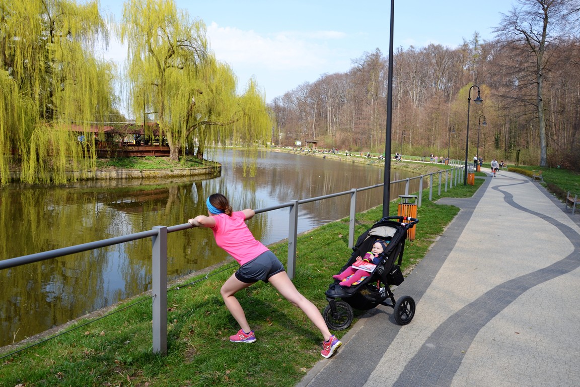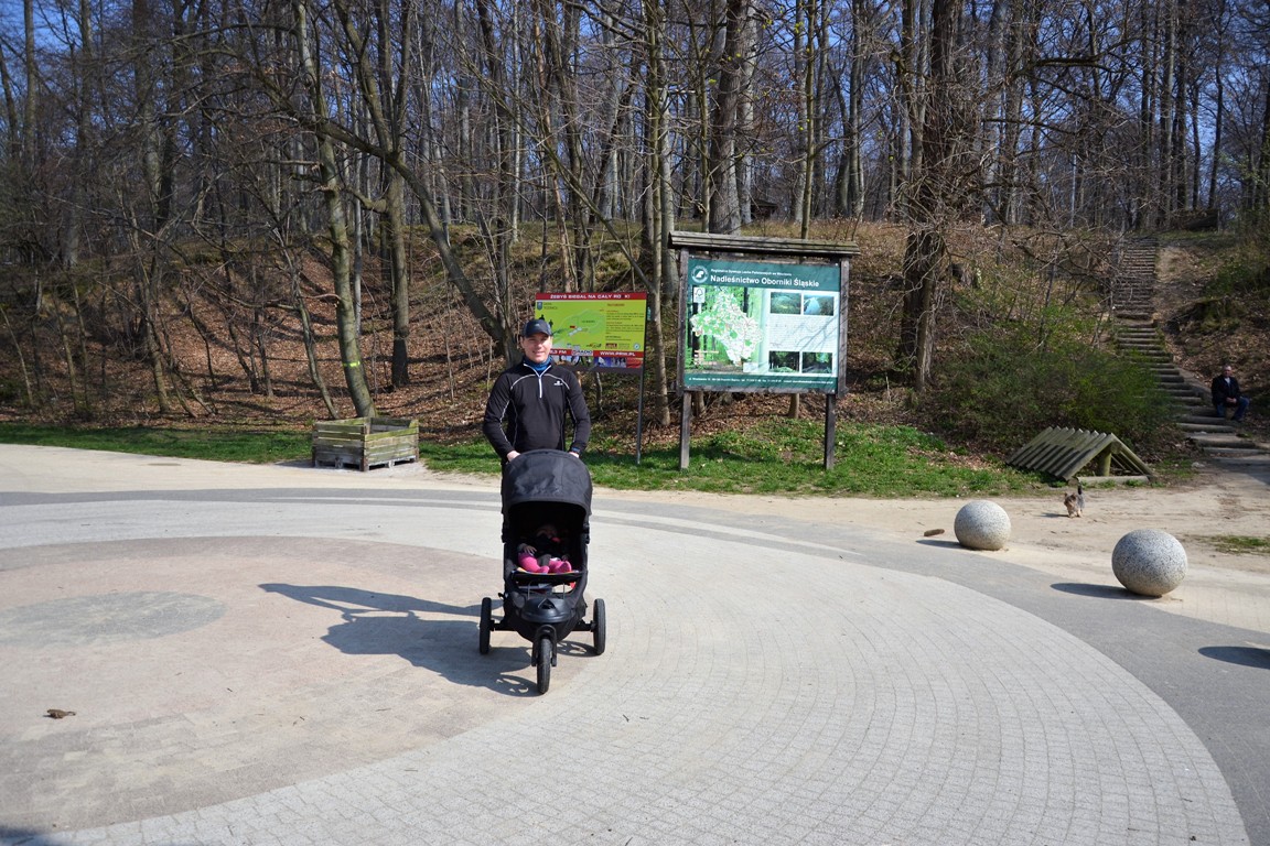 Nasz wózek, mimo kilku stromych podbiegów, spisywał się na nich doskonale. Może jedynie mielibyśmy problem ze podejściem po drewnianych schodkach, ale posłużyły nam one jedynie za miejsce rozciągania.