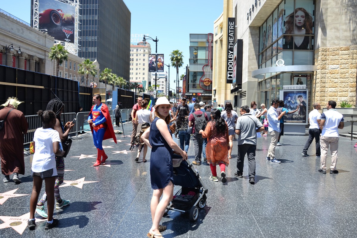Było bardzo gorąco i tłoczno. Akurat tego dnia, w którym byliśmy, odbywała się premiera Piratów z Karaibów. Przy barierkach już siedziały fanki (niektórzy nawet od 3 dni!). Trochę poszwendaliśmy się po okolicach, pooglądaliśmy sklepy z pamiątkami (nienawidzimy ich kupować), spotkaliśmy śpiewających piosenki religijne chińczyków i wyruszyliśmy dalej. Skierowaliśmy się na Wzgórza Hollywood.