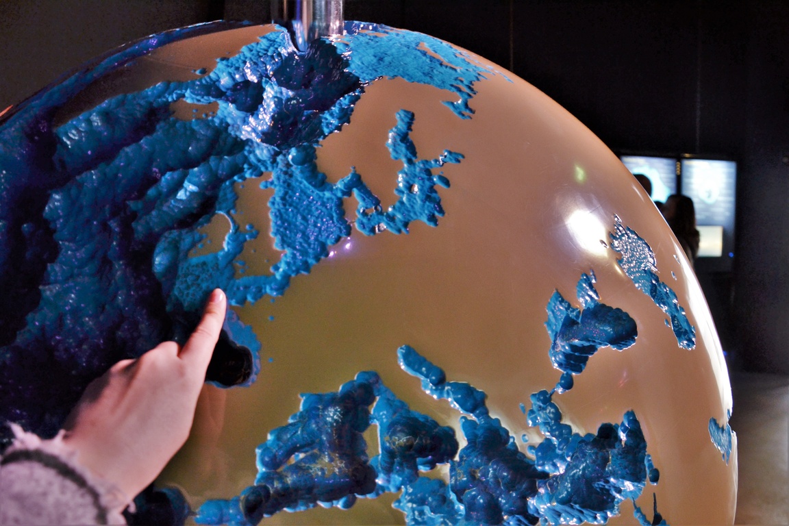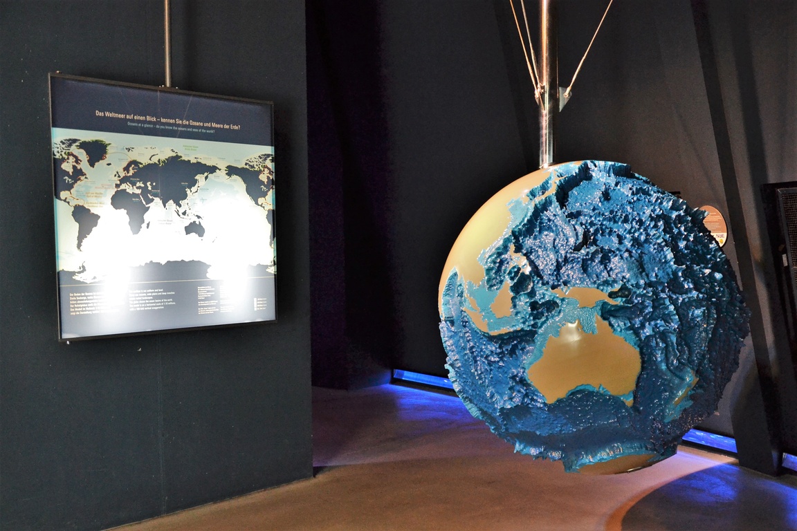 Pisałam o tym chwilę wcześniej, że jednym z powodów, dla którego w naszym morzu nie pływają płetwale jest brak odpowiedniej głębokości. W Oceanarium możesz przekonać się o tym na własne oczy. Ba! Możesz nawet sprawdzić to palcami na globusie profilowanym, z którego basenów spuszczono wodę.