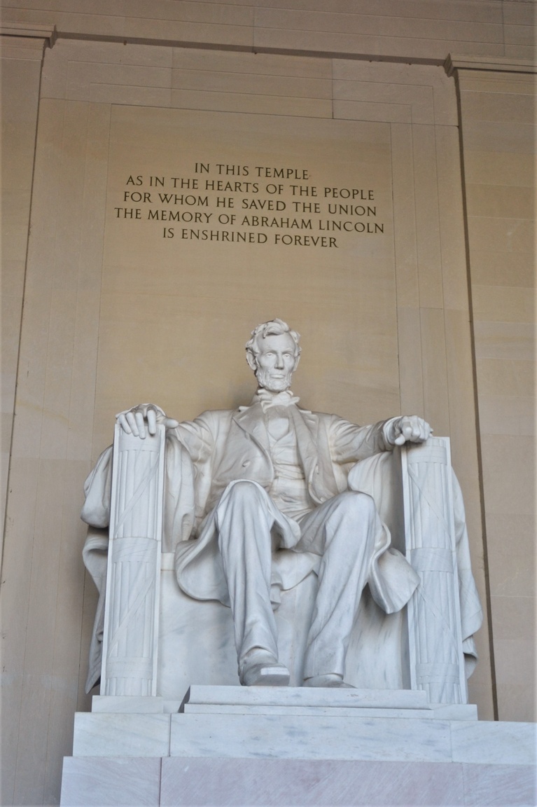 Kilkaset metrów dalej, po minięciu Parku Pamięci II Wojny Światowej i olbrzymiego sztucznego jeziora, stoi potężna marmurowa statua Lincolna.