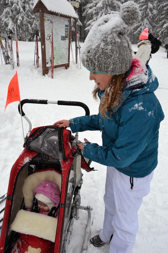 Do tematu podeszliśmy dość swobodnie, zakładając, że skoro w Jakuszycach jest tak dużo wypożyczalni to na bank dostaniemy przyczepkę od ręki. Na szczęście coś nas tknęło i we wtorek (4 dni przed wyjazdem) poszperaliśmy w Internecie i zadzwoniliśmy do kilku wypożyczalni. Wypożyczalnia nart biegowych, z której korzystaliśmy do tej pory przy wypożyczaniu butów i nart, nie miała ich w ofercie. Ba! bardzo zdziwiło ich nasze pytanie. Jedyna wypożyczania przyczepek miała już rezerwacje na sprzęt, a najbliższy dopiero za 2 tygodnie. Zarezerwowaliśmy w ciemno. Z pomocą przyszła nam wrocławska wypożyczalnia sprzętu turystycznego Planeta Rodzina. Cena jak w Jakuszycach, dowóz do domu – świetnie! Jedynym „minusem” był fakt, że musieliśmy wypożyczyć ją od razu na cały weekend, a nie tak jak w Jakuszycach na jeden dzień. Gdybyśmy totalnie nie trafili ze sprzętem, byłby kłopot.