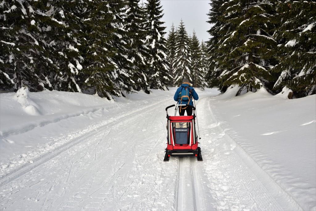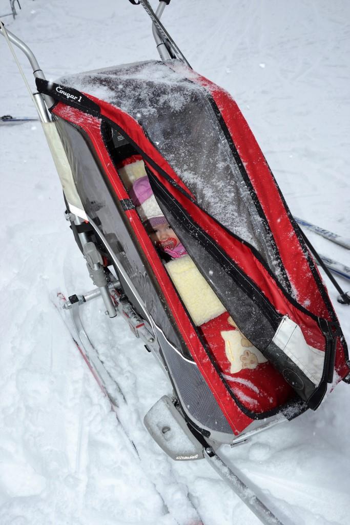 Przyczepka, którą wieźliśmy z Wrocławia to szwedzka (choć rodowód ma kanadyjski) Chariot Cougar 1, natomiast przyczepka „jakuszycka” to norweska Nordic Cab Explorer. Zupełnie nie dziwi nas, że oba „pojazdy” pochodzą z północnych krajów. Uprawianie sportu z dziećmi jest tam bardzo popularne. A jak wiadomo, zimy mają trochę cięższe niż nasze.