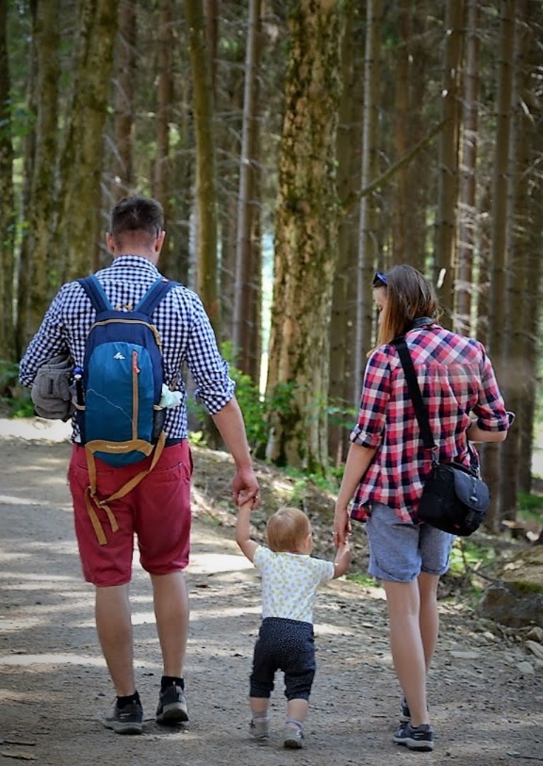 W różnej konfiguracji wyruszyliśmy na szlak. Wózki zostawiliśmy w bagażnikach, bo plan był taki, by całą trasę pokonać na nogach, a droga ponoć (nie sprawdzaliśmy) niezbyt nadaje się dla wózków.