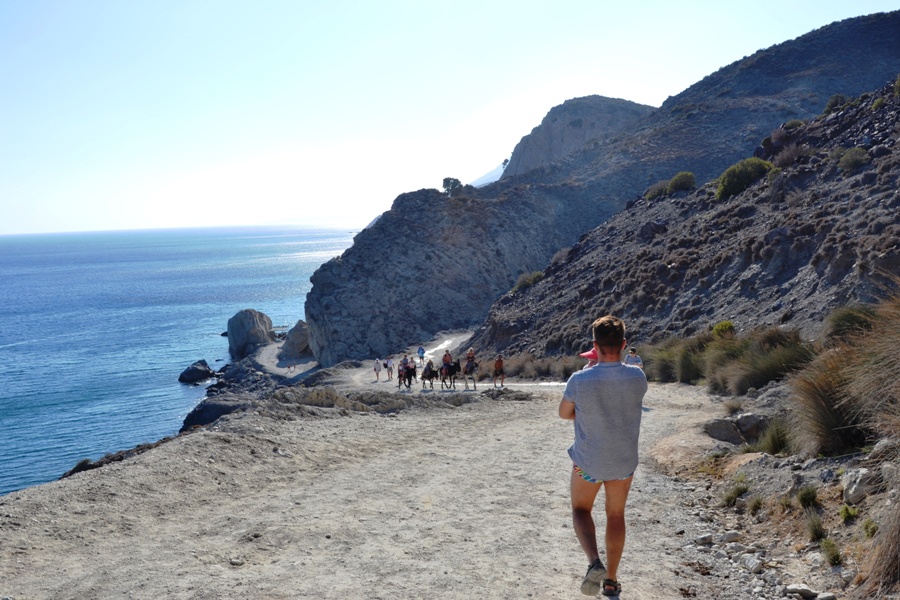 Z parkingu do term trzeba kawałek podejść (ok. 10 minut). Jest to szutrowa i kamienista droga. Miejscami bardzo stroma, toteż nasz wózek był dla nas dużą przeszkodą. Bardziej leniwi i nastawieni na relaks (w końcu idą do SPA) mogą skorzystać z przejażdżki osiołkiem. Warto zabrać wygodne buty, plaża tutaj jest żwirowo-kamienista