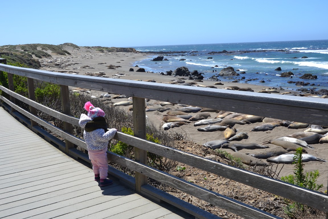 Po drodze zajechaliśmy jeszcze na plażę pełną lwów… oczywiście morskich. Wylegiwały się na plaży, mimo, że pogoda nie sprzyjała plażowaniu – haha. Widok był mega… zapach też. Porozmawialiśmy chwilę z parkowym wolontariuszem, który opowiedział nam co nieco o zwyczajach tych zwierząt i pognaliśmy dalej w stronę LA.